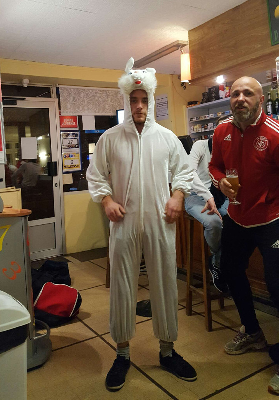 Auteur d’un c.s.c., Quentin a dû enfiler la tenue de lapin pour la soirée. Heureusement pour lui, il n’a pas été nourri au jus de carotte !
