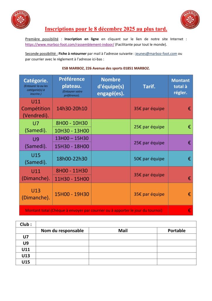 Tournoi en salle 2, 3 et 4 Janvier 2026