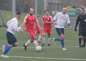 Ce samedi, notre équipe B démarrait sa deuxième phase de brassage contre l’équipe fanion d’Attignat. Nos joueurs rentrent bien dans le match et jouent en bloc haut sur le terrain. Le positionnement de nos joueurs bloque la relance adverse et nous récupérons de nombreux ballons. La technicité de nos joueurs offensifs nous permet de nous créer plusieurs occasions et c’est finalement Emilien Chanel qui d’une frappe croisée lointaine nous permet de débloquer le score. La 1ère demi-heure de nos rouges et blancs est de grande qualité et nous marquons un second but par Titouan Chagnard qui marque de près à la réception d’un bon centre à ras de terre de Max Malin. Sans réussir à marquer un troisième but, nos joueurs se font peur pendant les dix dernières minutes de la première mi-temps. Attignat recolle au score sur une combinaison à la sortie d’une de nos pertes de balle, puis égalise sur pénalty. Rageant… tant la 1ère mi-temps a été de qualité. Notre adversaire nous punit sur ses deux seules occasions.