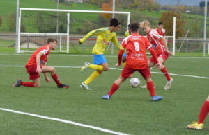 Et pourtant ! Sur un coup-franc contesté par les visiteurs, Anthony obligeait Vaissaud à repousser sur Léo qui échouait de nouveau sur le gardien, mais Valentin Pertuizet parvenait à marquer (73ème 1-2). Marboz jetait alors toutes ses forces pour égaliser, et Feillens, impérial jusque-là, cédait peu à peu dans les duels en espérant un contre décisif comme cela aurait arriver si Catherin n’avait vu Gaby lui plonger dans les pieds (86ème). Sur un centre d’Anthony remisé de la tête par Benjamin Pont, Antonin égalisait d’un superbe retourné acrobatique dans l’ambiance que l’on devine (90ème 2-2). Marboz revenait de loin et Feillens pouvait regretter son relâchement du dernier quart d’heure.