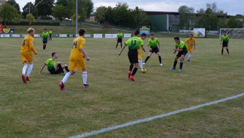 Ce samedi 19 septembre, notre équipe 5 démarre sa saison en recevant en coupe des Groupements Foissiat 2 qui évolue un niveau au-dessus de nous. Marboz débute le match de manière sérieuse en faisant bien circuler la balle, mais a du mal à trouver la profondeur et à s’installer dans le camp adverse. Sur une petite erreur de notre part à la demi-heure de jeu, les visiteurs ouvrent le score. Nous rentrons aux vestiaires en étant menés 1-0, mais avec l’ambition de renverser le cours du match. Malheureusement, très peu d’occasions pour nous en 2ème mi-temps dû à une bonne défense adverse, mais un très bon Antonin dans notre cage qui repousse plusieurs tentatives franches. L’équipe se découvre un peu plus dans les 10 dernières minutes pour tenter d’égaliser mais encaisse deux buts consécutifs sur des contres et le match se termine sur un score de 3-0. Résultat un peu sévère pour les joueurs marboziens qui ont livré une prestation plus qu’encourageante. Il faudra sans doute la même énergie le week-end prochain lors de la réception d’Attignat 2 pour empocher les 3 points dans une poule assez relevée mais très intéressante.