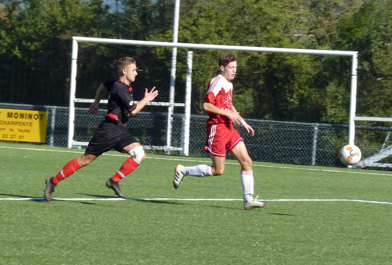 Suite au nouveau désistement de Dombes-Bresse, une opposition a eu lieu entre les U15 A et les U18 B. Un match où il y a eu beaucoup d‘intensité de part et d’autre. Victoire au final des U15 sur le score de 3 -2. A noter l’excellent match de Léandre dans la cage des U15 . Vivement que le championnat puisse se jouer enfin…. Buteurs : Ugo Maze, Quentin Philibert et csc. Merci à Sébastien Delay d’avoir bien voulu accepter cette opposition de dernière minute et aux U18 qui ont bien voulu rejouer après leur match de la veille.