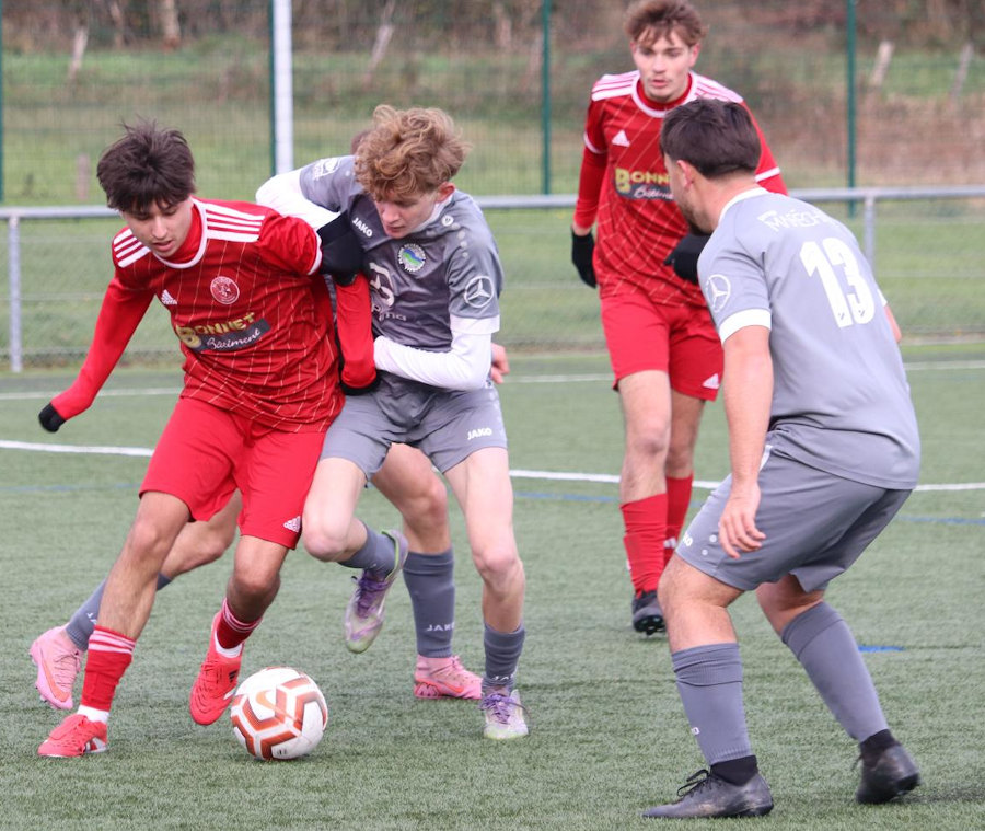 Notre entame de deuxième mi-temps n’est pas bonne, et nous concédons un pénalty transformé par Plastic Vallée dès la reprise. Malgré cela, nos joueurs vont montrer du caractère, de la solidarité, de l’envie tout en restant en maîtrise de leurs émotions ce qui va leur permettre de renverser le match. Notre travail de pressing, de courses va se montrer payant avec tout d’abord un pénalty provoqué et transformé par Luis Goncalves. Puis, sur l’une de nos nombreuses sorties de balle rapide et verticale, Nolan Jomard fait à nouveau parler sa vitesse pour aller jouer un face à face avec le gardien adverse qu’il bat d’une jolie frappe. Il reste alors une quinzaine de minutes à jouer que nous allons parfaitement gérer dans une fin de match tendue car nos adversaires donnent tout pour égaliser. Il n’en sera rien et nos jeunes Marboziens peuvent alors fêter cette victoire avec les nombreux supporters présents.