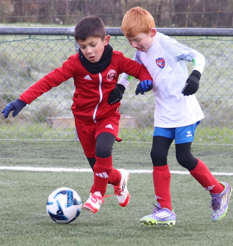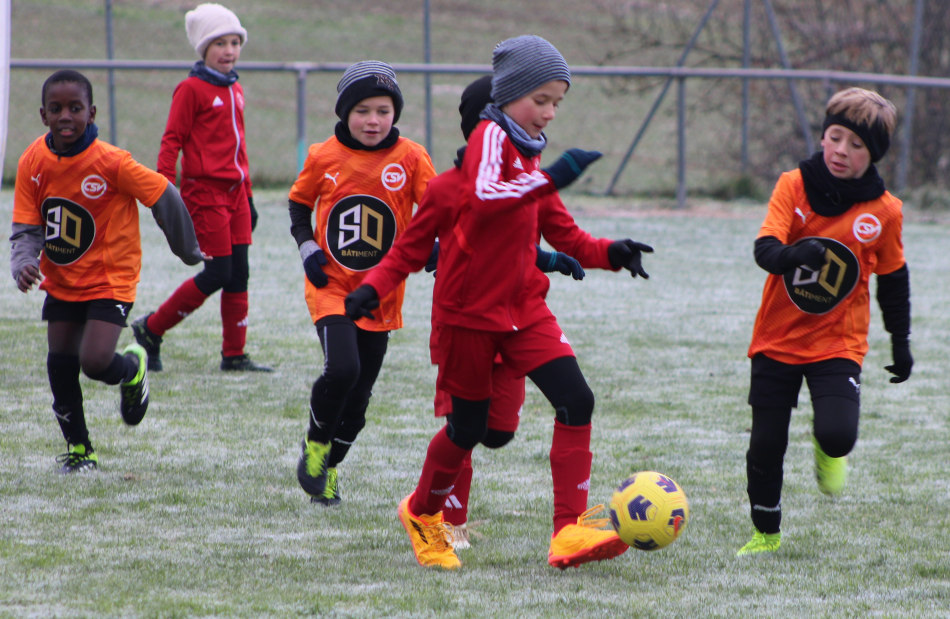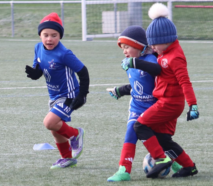 (Théo) Sous un froid bien présent, 17 enfants ont participé au plateau U7 à Marboz. Chaque joueur a pu disputer 4 matchs. Sourires, joie et enthousiasme étaient au rendez-vous, malgré quelques pieds et doigts bien gelés. Une belle matinée pour tous !