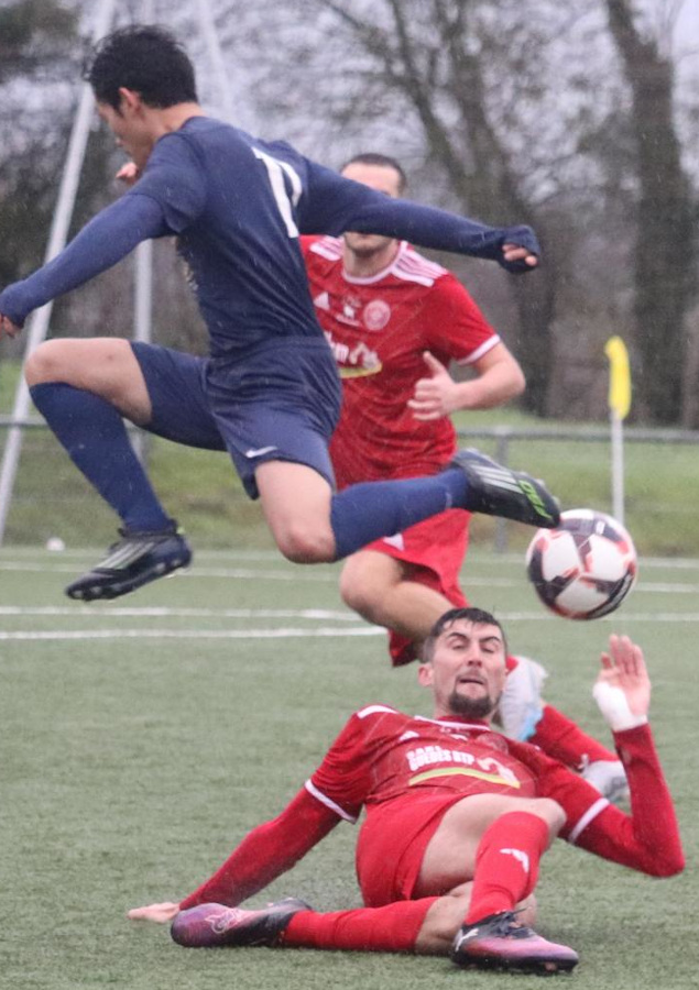 Match contre Montréal 2 en ce dimanche pluvieux contre une équipe se trouvant comptablement juste derrière nous au classement suite à des pénalités. Le discours de Jordan est précis et appuyé sur l’enjeu et l’adversaire du jour puisque les points sont importants contre nos concurrents directs. Début de match avec une belle intensité mais où les occasions franches se font très rares notamment à cause d’un manque de précision et de justesse technique de notre part… Nous encaissons un but à la 35’ sur une ouverture du bon numéro 10 adverse qui trouve l’ailier côté droit qui rentre dans la surface, fixe Jason Girerd et décale à son attaquant étrangement seul qui n’a plus qu’à pousser au fond (0-1). Nos joueurs ne lâchent pas et sur l’ultime corner avant la mi-temps, Nathan Ponceblanc s’arrache pour récupérer le ballon dans la surface et décaler Azad Kartoche qui finit dans le but vide (1-1).