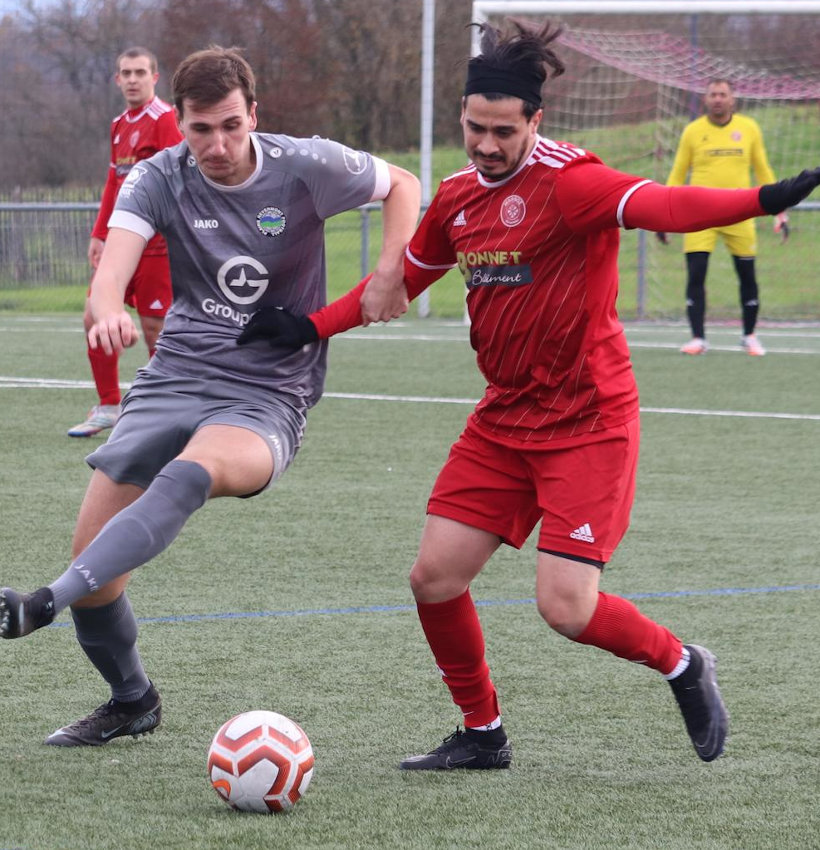 Les trois changements de la mi-temps avaient pour objectif de nous redonner de l’élan et cela été bénéfique, en témoigne le bel échange entre Alexandre Maîtrepierre et Antonin Gourmand, bien fini par ce dernier d’un lob astucieux. Nous pensions, comme à St-Marcellin, avoir fait le plus dur. Mais sur un nouveau fait de jeu (et oui…) cumulé à quelques erreurs de placement, nous encaissons un nouveau but. Pas de quoi nous démobiliser, nous repartons à l’assaut ! Le vétéran (comprenons bien “expérimenté” et non “vieillissant”) Alexandre y va de sa réalisation personnelle sur coup-franc avant de servir le jeune et précoce Louis Salem dont la frappe est détournée par le portier adverse sur le poteau… Non récompensés de nos efforts, nous rentrons avec un point en espérant, qu’un jour enfin, “la routourne va tourner” comme le disait autrefois un célèbre joueur français. Réception ce samedi de Villefontaine qui sera déjà un tournant dans ce championnat très homogène.