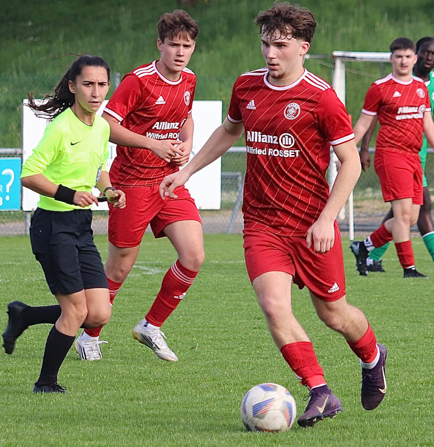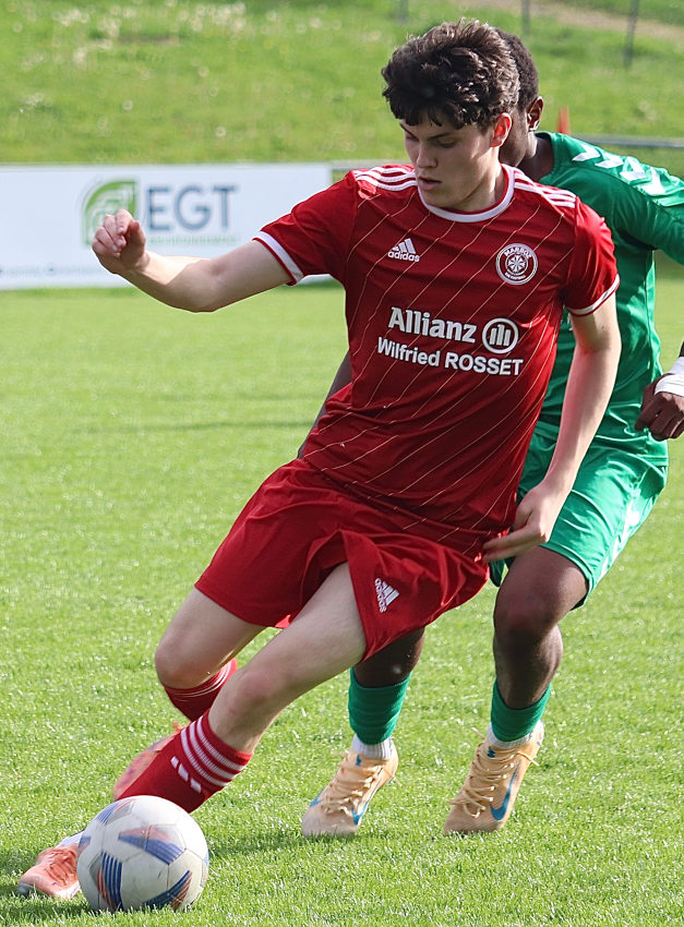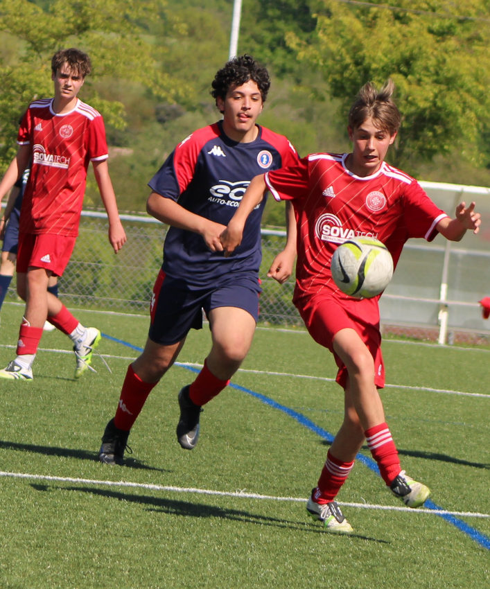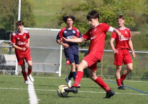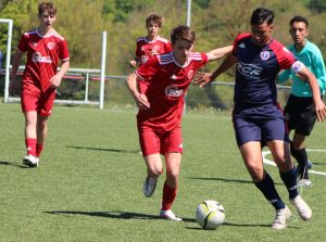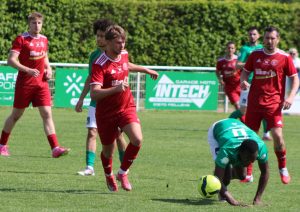 Face à des adversaires très athlétiques, le début du match est équilibré. Nous prenons peu à peu le jeu à notre compte avec de la qualité technique et une bonne animation collective. Les consignes d’avant-match sont bien respectées et nous sommes récompensés par un but de Thomas Michel après un mouvement collectif de belle facture. Mi-temps 1 à 0.